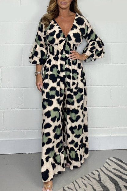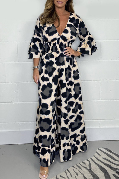 Hot Sale🔥 Women's Leopard Print Elastic Waist Casual Wide Leg Jumpsuit