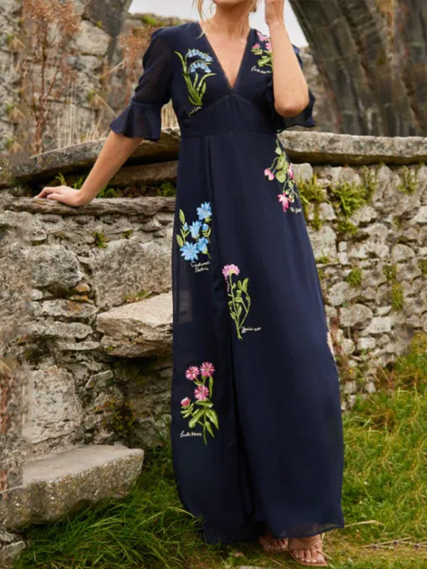 NEW🔥 V Neck Floral Embroidered Ruffle Dress- Tax Free